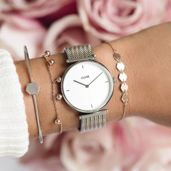 H σειρά CLUSE Triomphe είναι για τις γυναίκες που θέλουν ένα κομψό και στυλάτο ρολόι, για όλες τις ώρες. Ισορροπεί ανάμεσα στο κλασικό και το μοντέρνο, ενώ οι πολλοί συνδυασμοί χρωμάτων θα σε βοηθήσουν να βρεις αυτό που σου ταιριάζει. Δημιούργησε εσύ το δικό σου μοναδικό CLUSE ρολόϊ αλλάζοντας εύκολα λουράκι με άλλο λουράκι CLUSE του ίδιου μεγέθους!